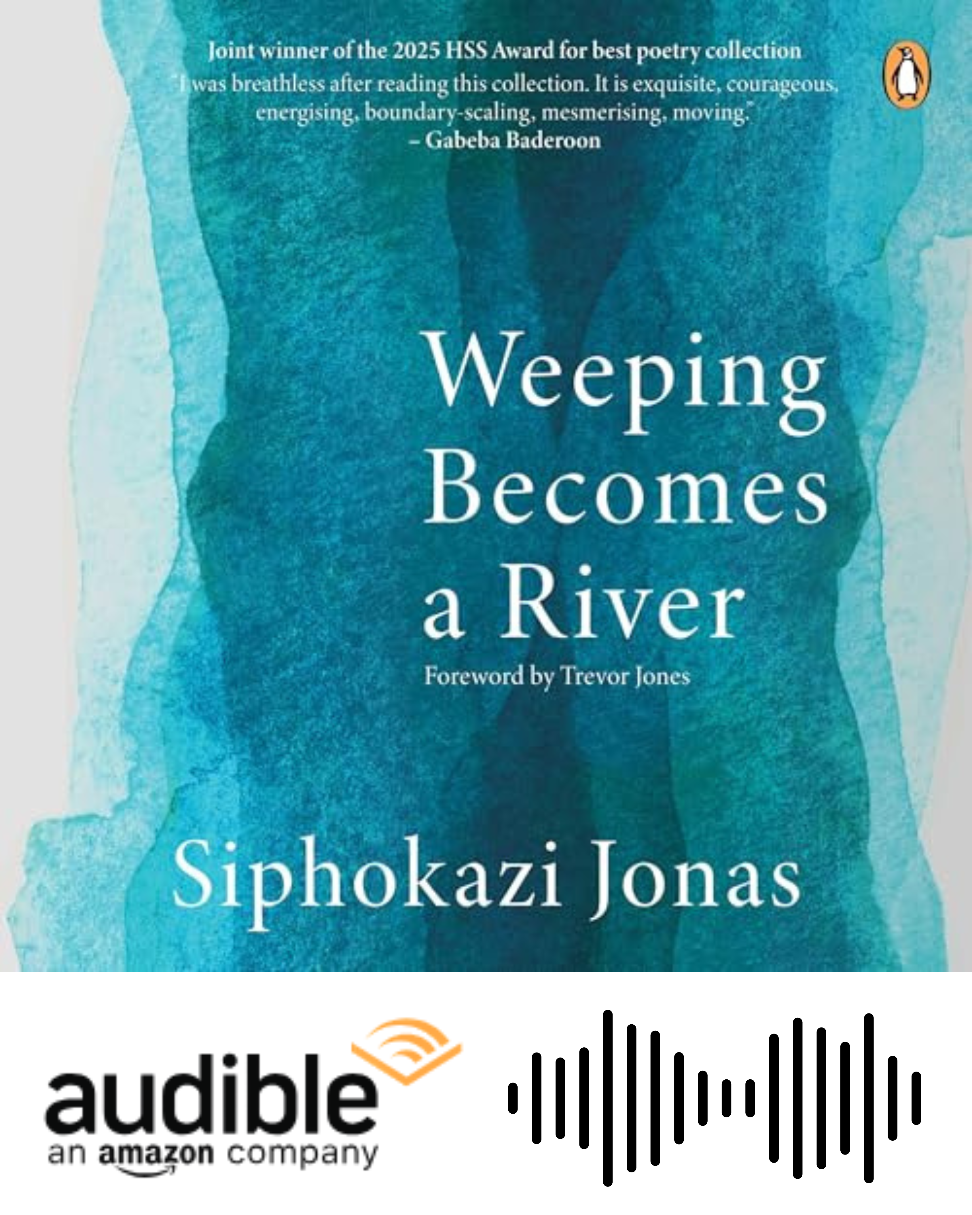 Weeping Becomes a River, narrated by award-winning author and performer Siphokazi Jonas, weaves seemingly discordant worlds, rooted in her experiences of growing up in an Afrikaans dorpie, attending an English boarding school, and going on annual holidays to a village emaXhoseni during the transition years of South Africa’s democracy.